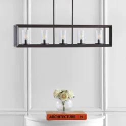 18″ 4-Light Piper Farmhouse Rustic Iron/Glass LED Semi Flush Mount Nickel/Clear – JONATHAN Y