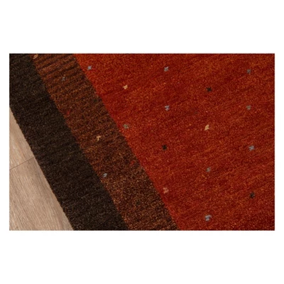 The geometric motifs of this traditional area rug reflect the soft pile and unparalleled elegance of classic Kashkoli designs. Using traditional techniques perfected by rug artisans in the foothills of Iran, the solid field and decorative border of each beautiful Gabbeh rug is created with a warm color palette that complements every space. Hand-knotted craftsmanship and 100% natural wool fibers mean every stitch of this decorative floorcovering is crafted with care.