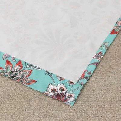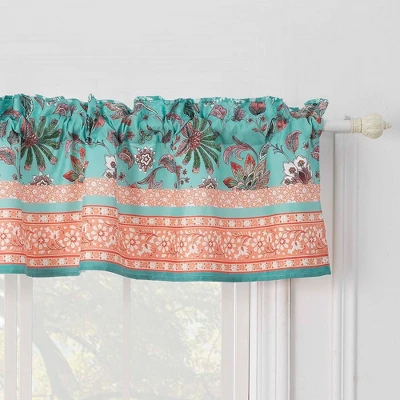 Add a chic boho vibe to your space with the Audrey window valance. Stylized jacobean fern and floral prints in turquoise and coral tones for an exotic, tropical look and feel. Lined with solid color fabric for increased privacy and sun protection. Extra wide to fit even the largest windows in the house. Dimensions: 84″ wide and 16″ long, plus a 2in header. 100% polyester face, back (2 ply). Three-inch rod pocket fits most curtain rods for hanging. Machine washable. Product Size: 84″ x 16″ + 2″