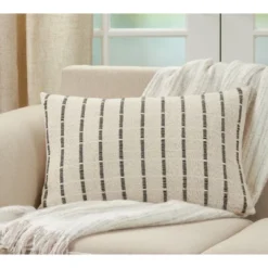 Lumbar Faux Leather Channel Stitch Decorative Throw Pillow – Threshold™