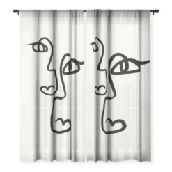 Bohomadic Studio Double Line Faces Black Single Panel Sheer Window Curtain – Society6