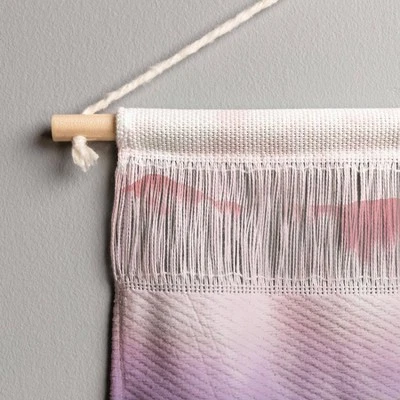 Recognize the phases of the moon in the Emanuela Carratoni Pastel Moontime Wall Hanging from Deny Designs. Suspended from a light-colored wooden dowel and white rope, this fringed, woven wall hanging features a wash of colors evoking the natural world, with the phases of the moon at the center. Hang anywhere you need to adorn a wall, or use the sheer fabric as a quick way to gently separate a space.