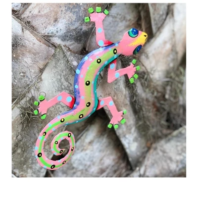- This cute Gecko is crafted from steel oil drum and then painted with bright tropical colors to create a unique and one of a kind piece.