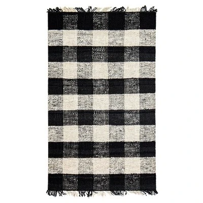 This all-natural jute area rug revisits buffalo plaid with a large check pattern in black and ivory for a modern spin on a timeless design. Bi-color fringe adds polish and handmade craftsmanship shines through in this rug’s delightfully irregular, open weave. Style it in a rustic or urban interior, take it minimalist or traditional – either way you’ll make an authoritative statement with its bold, graphic pattern. Handloom-woven by skilled artisans in India, this rug is Goodweave certified as ethically produced with fair labor practices. Its low profile is perfect for high-traffic areas of the home, so you can place your new living room or entry rug safely and securely without the need to reposition.