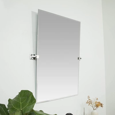 Hamilton Hills brings you this sophisticated 24″ x 36″ beveled rectangle mirror with modern squared pivot adjustable wall brackets. The frameless design is backed with safety vinyl and suspended by adjustable rotating polished glass clamps. This mirror is made of premium material, corrosion-resistant and durable, perfect for bathrooms, kitchens, bedrooms and more. It comes with metal brackets, slide tracks, screws and our certification of authenticity. Enjoy 3 generations of excellence and quality with Hamilton Hills.