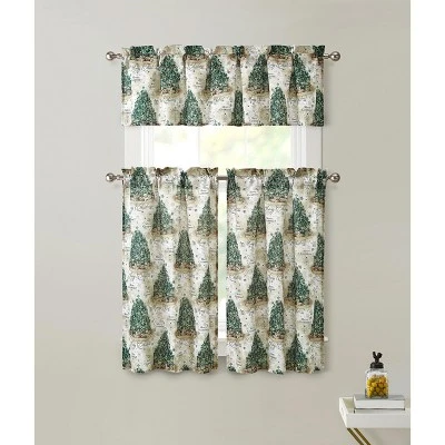 Nothing is more welcoming than a beautifully decorated Christmas themed home for the holidays. This kitchen curtain tier and valance set features a rod pocket header for easy installation. Machine washable and dry able for easy care. Set comes with two tiers and one valance.