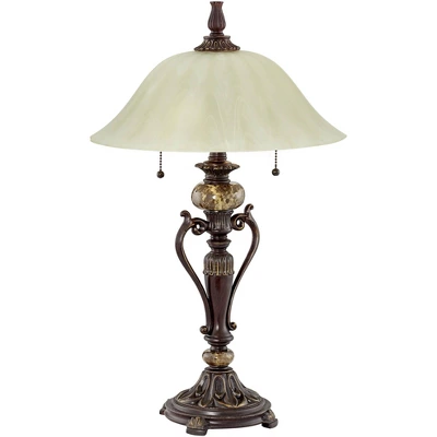 Kathy Ireland Amor Traditional Table Lamp 26″ High Bronze Alabaster With Table Top Dimmer Champagne Glass Shade For Bedroom Living Room Bedside Office