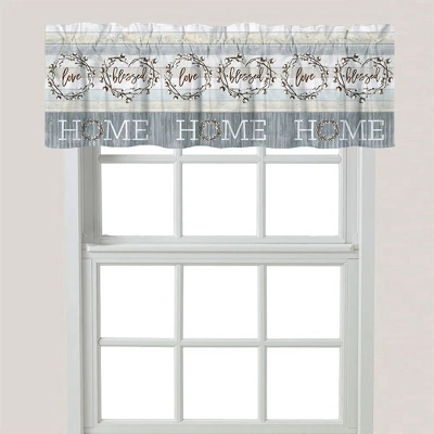 This rustic, farmhouse inspired window valance, “Loving Home,” brings a soft, loving feeling into your home. The elegant design has beautiful cotton wreaths and the words “Love” and “Home” against a soft color wood background for a sweet, welcoming touch. This serene design will bring a gorgeous and unique look to any home decor!