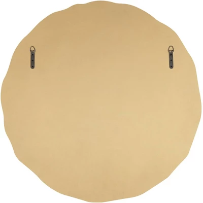Crafted for the Noble Park Lissa Mirror collection, this round wall mirror boasts an understated but dynamic design. The mirror features round beveled glass for a classic, elegant look. Its frame features a rippling, waved edge with a soft gold finish.