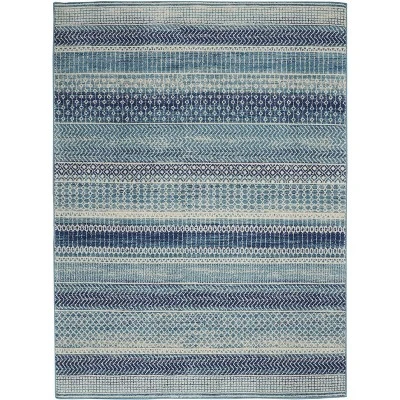 Berber rug motifs get a jazzy update in this contemporary Passion area rug design. Gorgeous indigo blues add depth to the lively linear patterns. Sensual and seductive with thick, power-loomed construction and cut-pile texture for added pleasure.