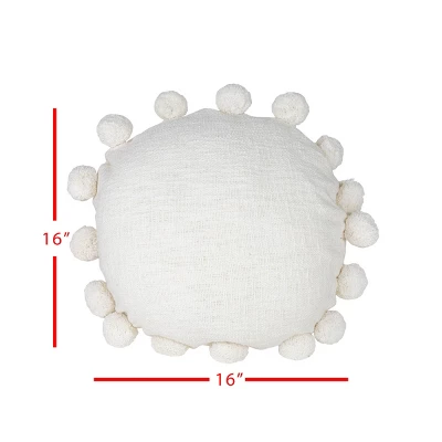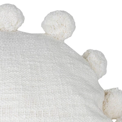The perfect basic that is not short of interest! This round hand-woven throw pillow boasts detail with its texture and poms. The unbleached, cotton slub base fabric is accented with cotton pom poms. The neutral color easily transitions from season to season.